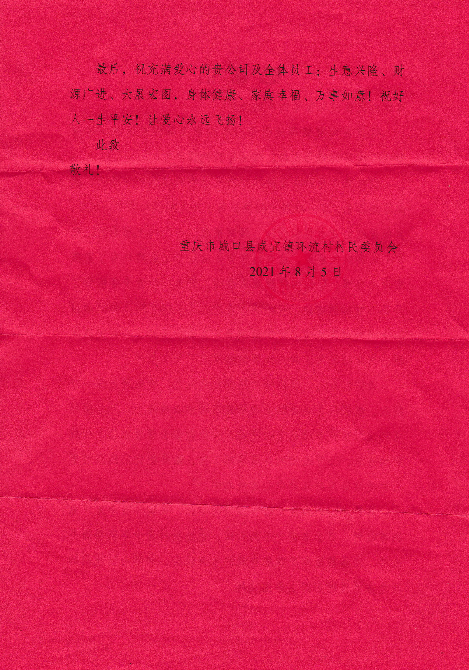 圖 | 重慶市城口縣咸宜鎮(zhèn)環(huán)流村村民委員會感謝信內(nèi)容