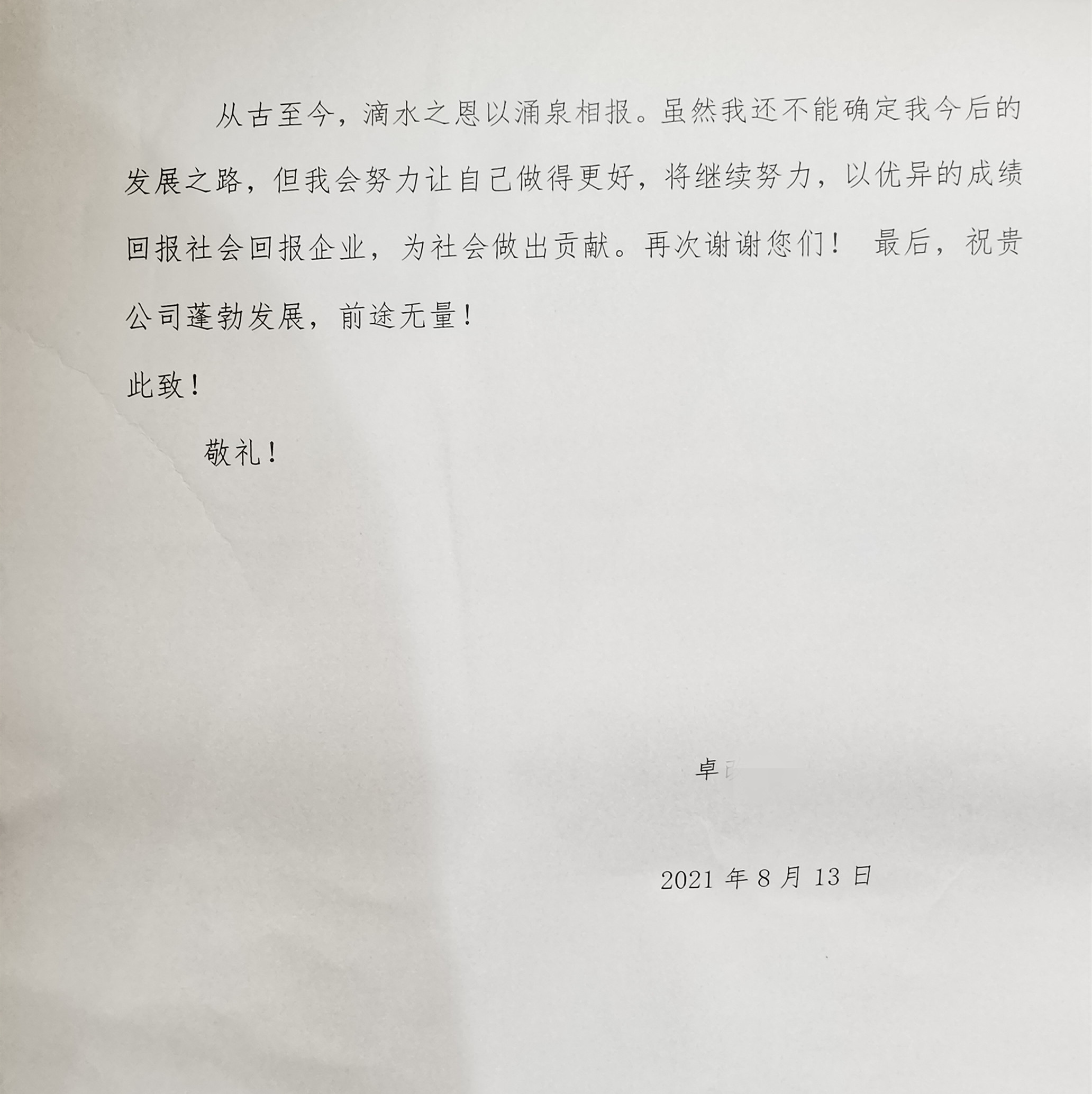 圖 | 卓同學(xué)學(xué)生感謝信內(nèi)容