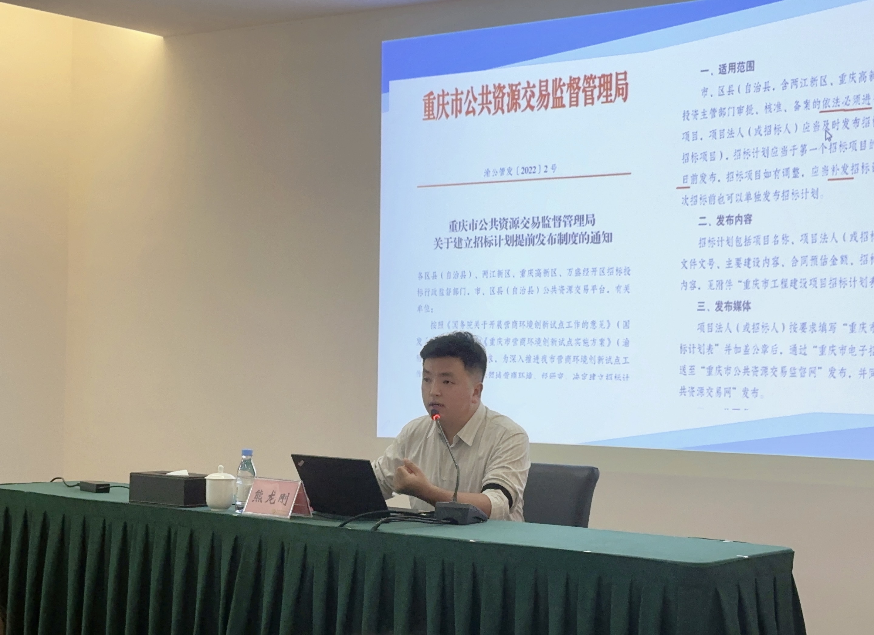 7月3日下午,同致誠工程咨詢有限公司受重慶市公共資源交易中心邀請,為其提供工程招標流程及實操專題培訓。為達到培訓效果,公司尤為重視,招標代理部用心準備,安排具有十余年招標代理從業(yè)經驗的熊龍剛經理分享實操經驗。