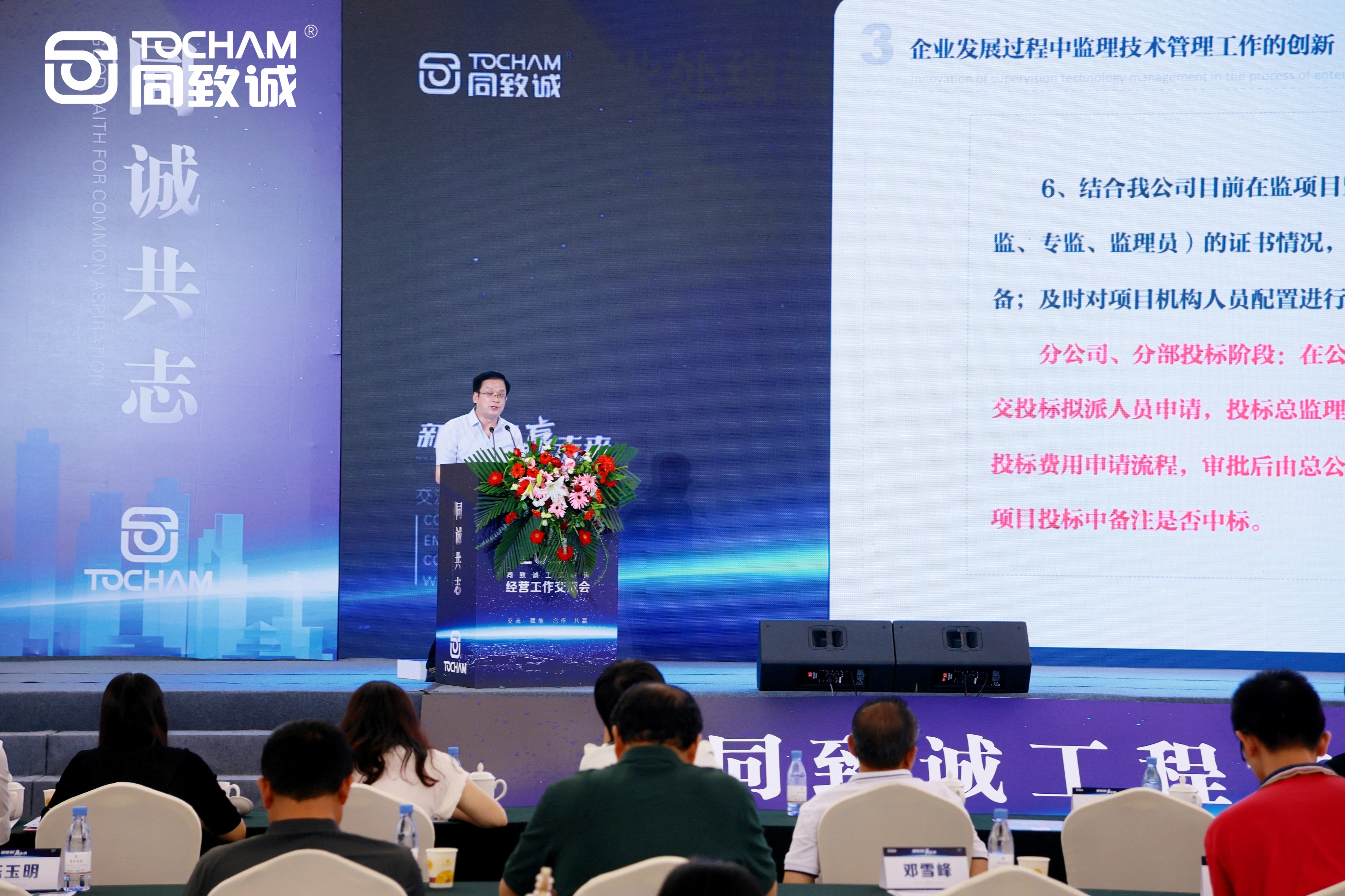 會上,同致誠董事長張雷首先對參會嘉賓的到來表示熱烈的歡迎和由衷的感謝。張總動情的說道:“今天這場會議是時隔三年的一場大團(tuán)聚,一家人在一起要說說心里話。舉辦這次會議的目的就是想跟大家交流、賦能,希望大家能在同致誠這個平臺上取得更大的成就!贝送,張總還從公司發(fā)展規(guī)劃做了分享。他談到:公司整合資源,成立了運(yùn)營中心和全過程咨詢部,無論從市場開拓,還是從技術(shù)、人員、資質(zhì)等方面,都將給予各分公司更大的支持,聚力賦能,實(shí)現(xiàn)高質(zhì)量發(fā)展。