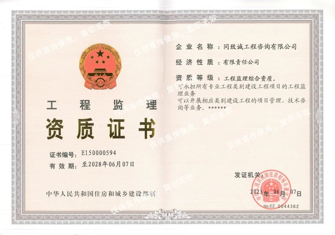深耕工程咨詢行業(yè)20年,同致誠始終堅(jiān)持“全員參與 誠信務(wù)實(shí) 科學(xué)嚴(yán)謹(jǐn) 持續(xù)改進(jìn)”的質(zhì)量方針,持續(xù)加強(qiáng)資質(zhì)體系建設(shè),現(xiàn)已擁有工程監(jiān)理綜合資質(zhì)、工程招標(biāo)代理甲級(jí)、工程造價(jià)咨詢甲級(jí)、工程咨詢(建筑)甲級(jí)資信、工程咨詢(市政公用工程)甲級(jí)資信、政府采購代理機(jī)構(gòu)甲級(jí)、城鄉(xiāng)規(guī)劃編制乙級(jí)、中央投資項(xiàng)目招標(biāo)代理乙級(jí)、農(nóng)田工程建設(shè)勘測(cè)設(shè)計(jì)單位乙級(jí)等10余項(xiàng)行業(yè)專項(xiàng)資質(zhì)。