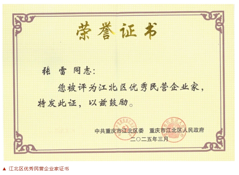 榮獲“江北區(qū)優(yōu)秀民營企業(yè)家”稱號(hào)