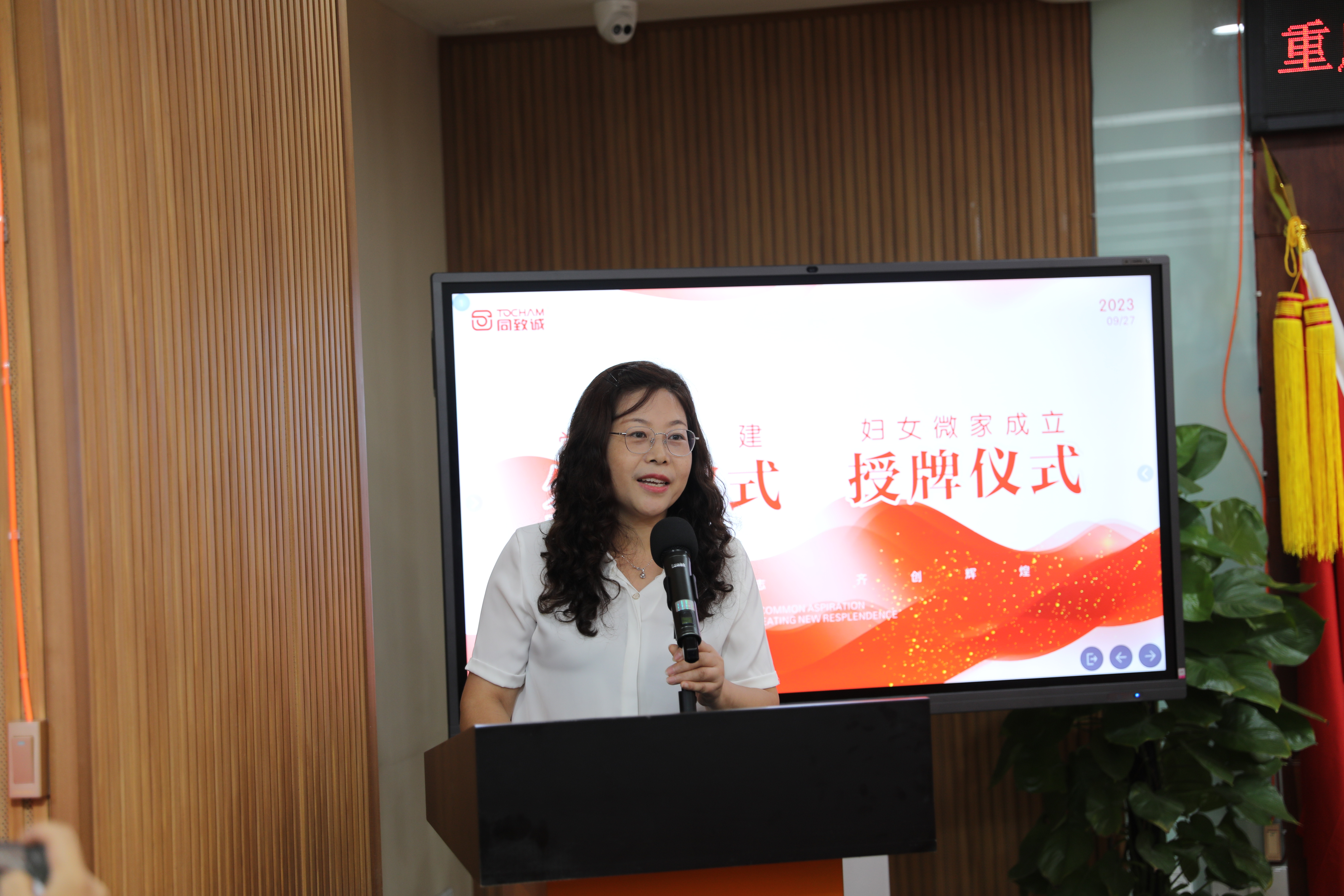 兩江新區(qū)婦聯(lián)主席劉凌云為同致誠婦女微家授牌