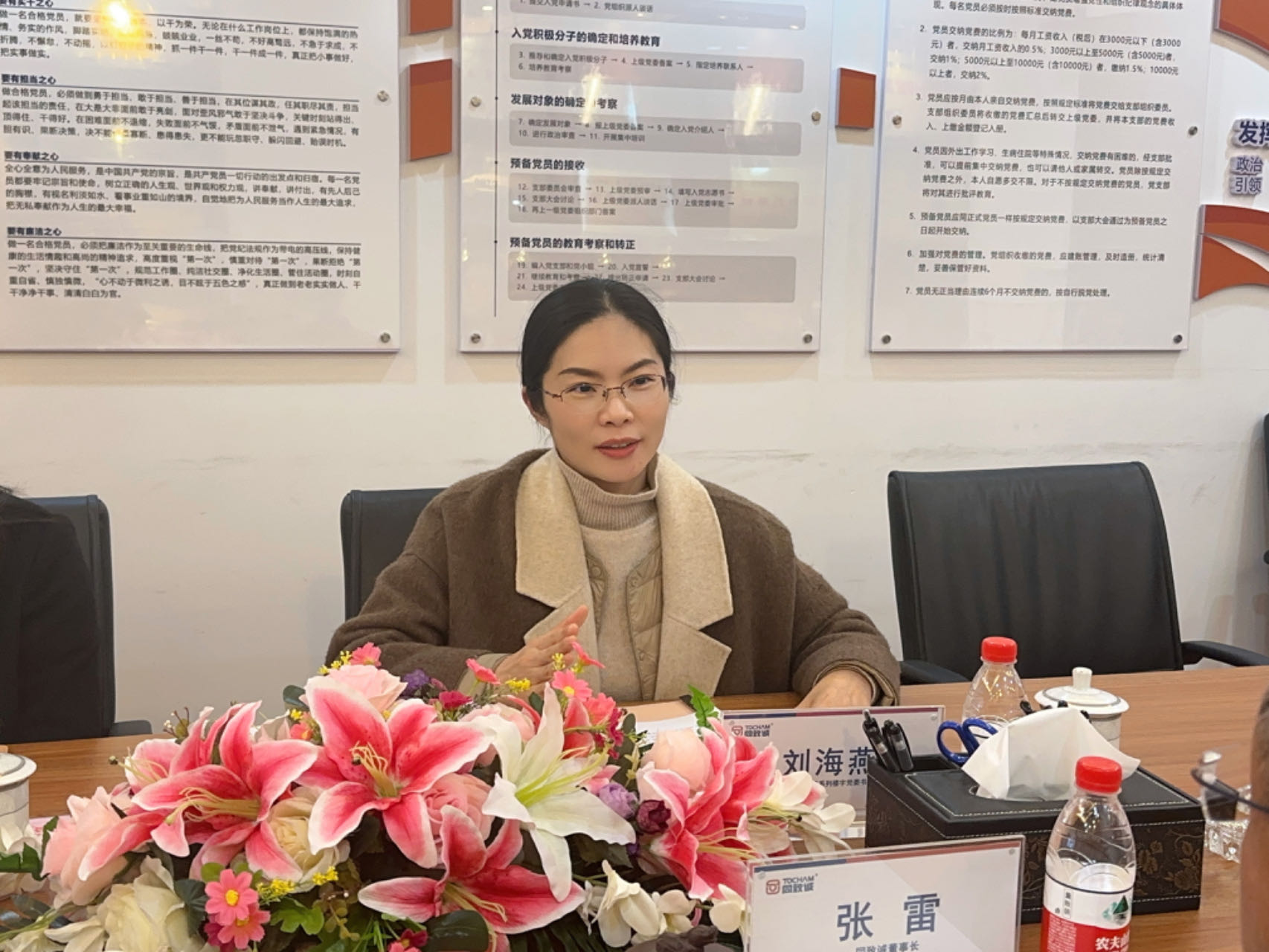 在聽取張雷董事長和劉星書記的匯報后,劉海燕書記對我司的經(jīng)營發(fā)展和黨建工作開展給予了充分的肯定,尤其贊許了我司的“三項機(jī)制”,認(rèn)為它在風(fēng)險管控、廉政建設(shè)方面發(fā)揮著重要作用。劉書記還談到,黨建工作和業(yè)務(wù)工作不能搞“兩張皮”,不能就黨建談黨建,一定要和企業(yè)的生產(chǎn)經(jīng)營結(jié)合起來,而結(jié)合的點(diǎn)有“三個力”:一是生產(chǎn)力,通過黨員認(rèn)領(lǐng)業(yè)務(wù)等,積極發(fā)揮先鋒模范作用,提升企業(yè)的生產(chǎn)力,促進(jìn)企業(yè)發(fā)展壯大;二是競爭力,把公司骨干發(fā)展成黨員,把黨員培養(yǎng)成業(yè)務(wù)骨干、中堅力量,通過“雙培養(yǎng)”的方式,完善人才隊伍建設(shè),提升企業(yè)的核心競爭力;三是凝聚力,無論是國家與企業(yè),還是企業(yè)與員工,我們要自覺在思想上政治上行動上同黨中央保持高度一致,增強(qiáng)凝聚力。同時,劉書記向與會人員介紹了星系列樓宇黨委的特色工作,表示星系列樓宇黨委在為企業(yè)提供法律援助、行業(yè)交流、員工培養(yǎng)、文化活動等方面具有成熟的經(jīng)驗(yàn)和方法。黨委始終和企業(yè)站在一起,也是企業(yè)的資源,我們可以以黨建作為橋梁擴(kuò)大企業(yè)的朋友圈,為企業(yè)做好服務(wù)保障,助推企業(yè)健康發(fā)展。