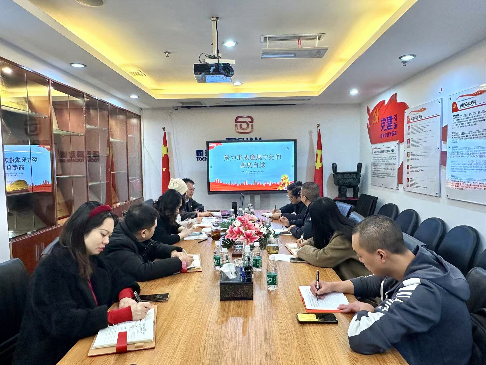 隨后,黨支部書記劉星帶領(lǐng)大家學(xué)習(xí)中共中央政治局召開的會議—— “分析研究2025年經(jīng)濟(jì)工作 研究部署黨風(fēng)廉政建設(shè)和反腐敗工作”的會議精神,并圍繞“努力形成遵規(guī)守紀(jì)的高度自覺”主題,為大家講授紀(jì)律教育整頓專題黨課。