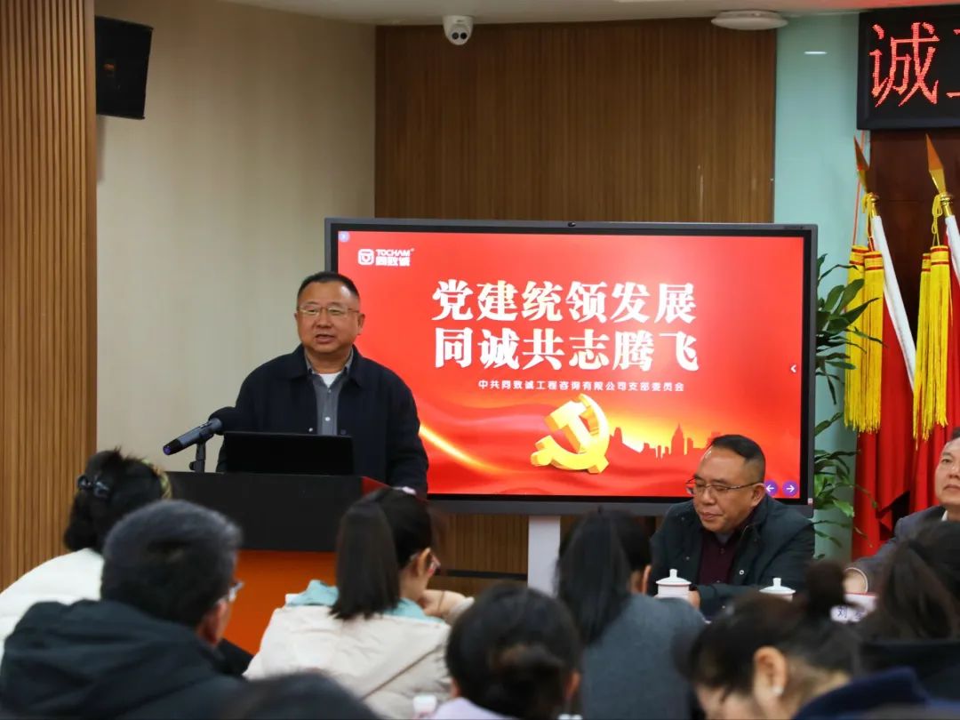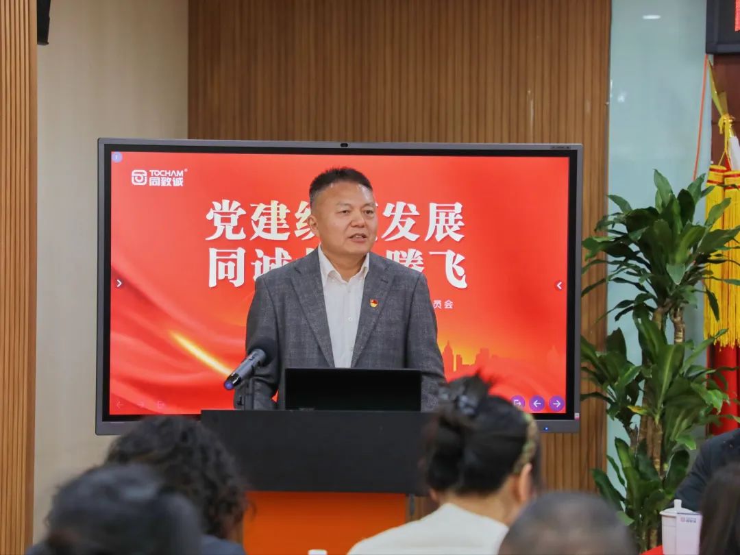 隨后,會議在同致誠黨支部副書記、副總經(jīng)理何雨的主持下正式拉開序幕,共話黨建引領(lǐng)發(fā)展的實踐路徑。同致誠黨支部書記劉星以《黨建統(tǒng)領(lǐng)發(fā)展 同誠共志騰飛》為主題,從“加強(qiáng)四項建設(shè),堅定主心骨,引領(lǐng)公司發(fā)展正確政治方向;構(gòu)建'三項機(jī)制',建好連心橋,擴(kuò)延黨建工作新格局;開展'雙強(qiáng)雙帶',提升向心力,激活黨員先鋒能效引擎;守住一個底線,打好護(hù)心錘,保證公司健康持久發(fā)展 ”全面總結(jié)了黨建工作開展情況,分享了黨建引領(lǐng)公司發(fā)展的寶貴經(jīng)驗 ,為企業(yè)黨建與業(yè)務(wù)融合提供了可借鑒的思路。