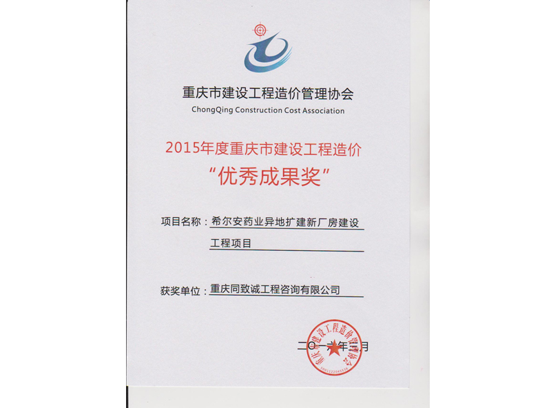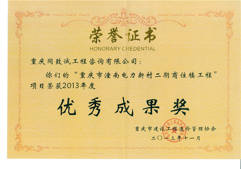 2013潼南電力新村商住樓優(yōu)秀成果獎
