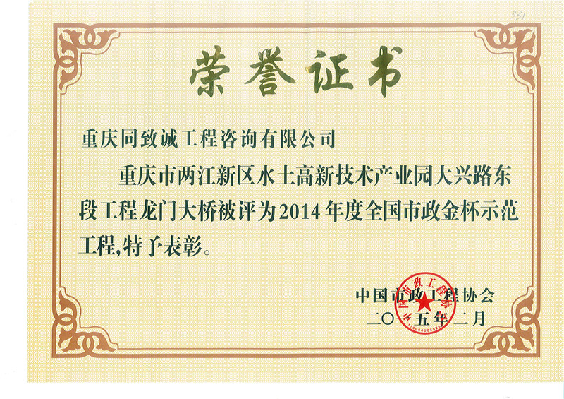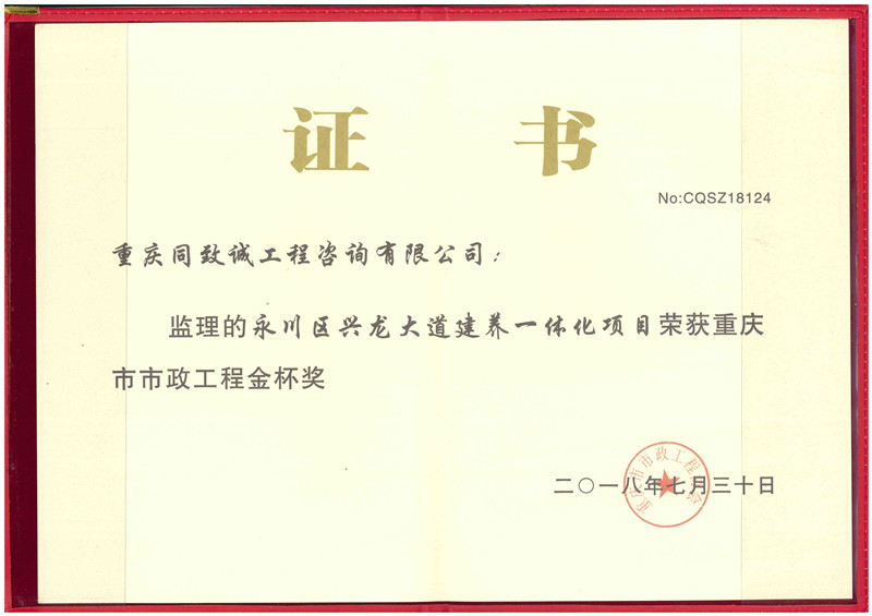2018年重慶市政工程金杯獎-永川區(qū)興龍大道建養(yǎng)一體化項目