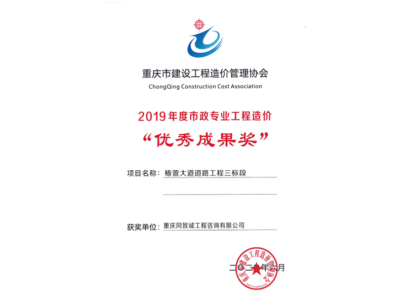 2019年度市政專業(yè)工程造價優(yōu)秀成果獎-椿萱大道道路三標(biāo)段