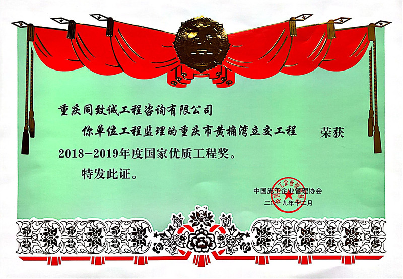 2017年度重慶巴渝杯優(yōu)質(zhì)工程獎-黃角灣立交