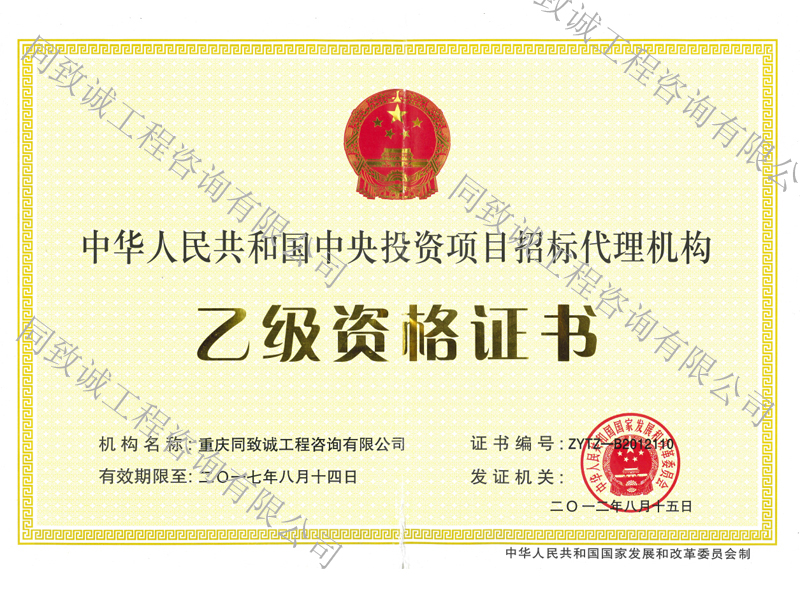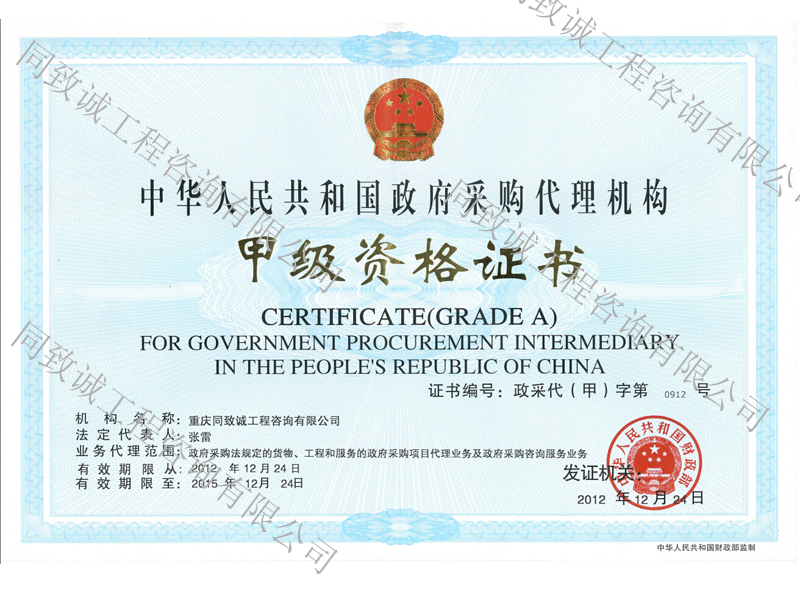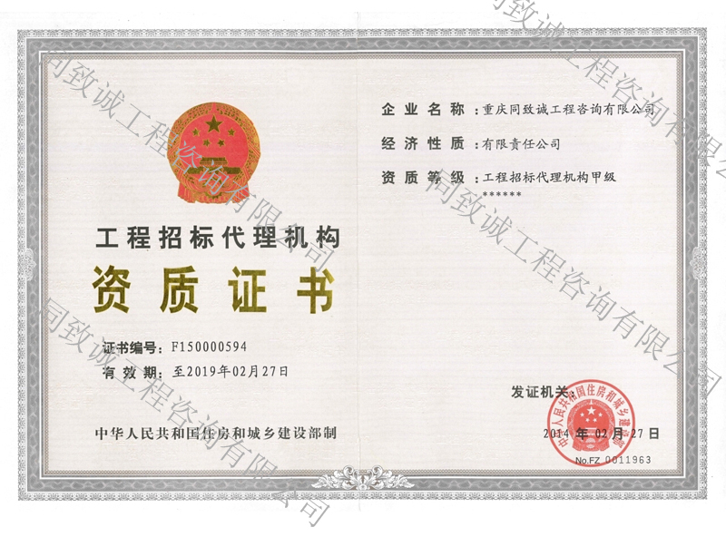 工程招標(biāo)代理甲級(jí)甲級(jí)正本