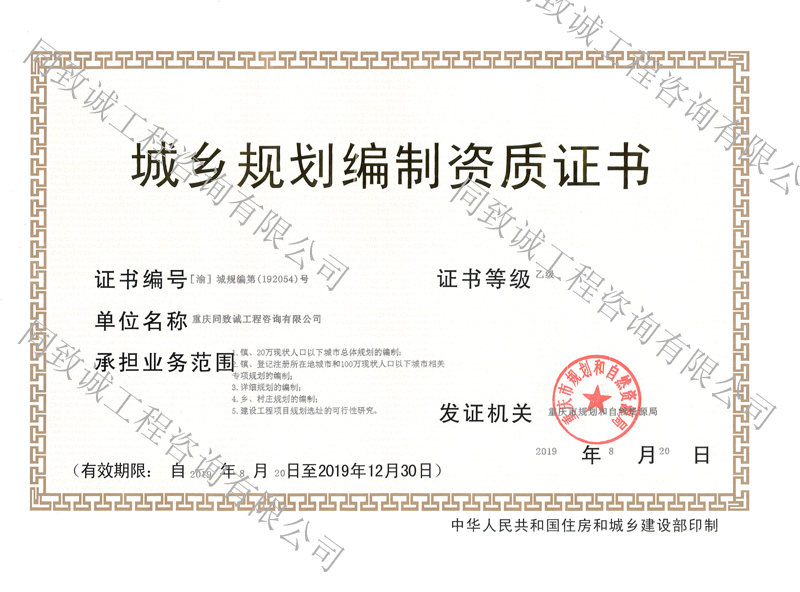 城鄉(xiāng)規(guī)劃編制資質(zhì)證書