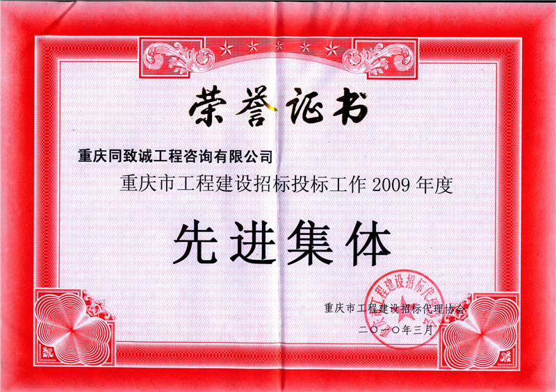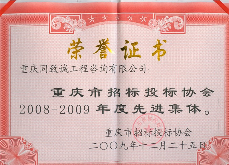 2008-2009年度重慶市招標投標協(xié)會先進集體