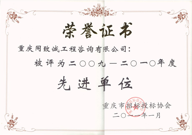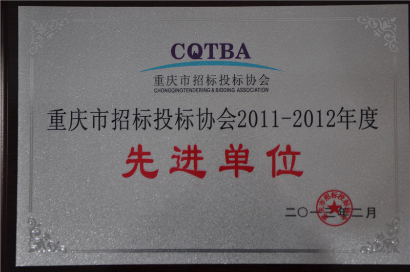 2009-2010年度重慶市招標投標協(xié)會先進單位