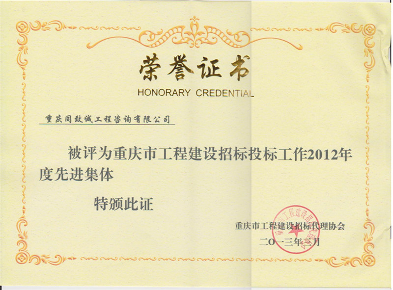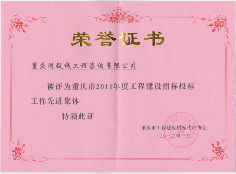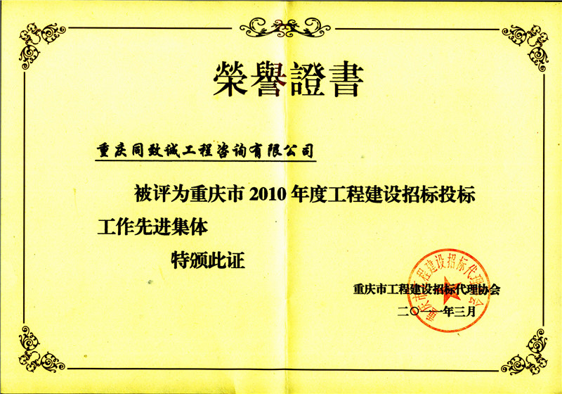 2010年度重慶工程建設招標代理協(xié)會先進集體