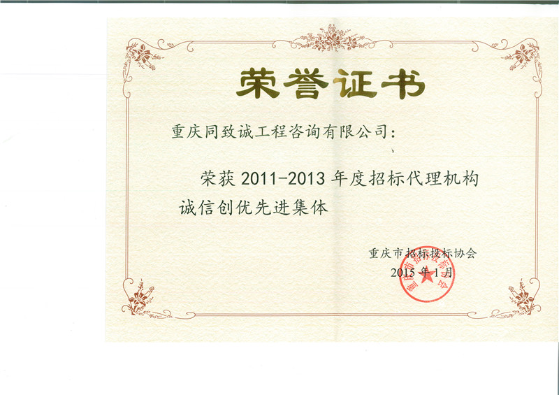 2011-2013年度招標代理誠信創(chuàng)優(yōu)先進集體