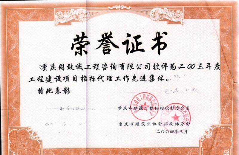 2003年度工程建設(shè)項(xiàng)目招標(biāo)代理工作先進(jìn)集體
