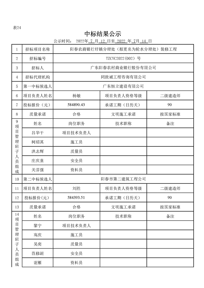 陽(yáng)春農(nóng)商銀行圩鎮(zhèn)分理處(擬更名為輪水分理處)裝修工程