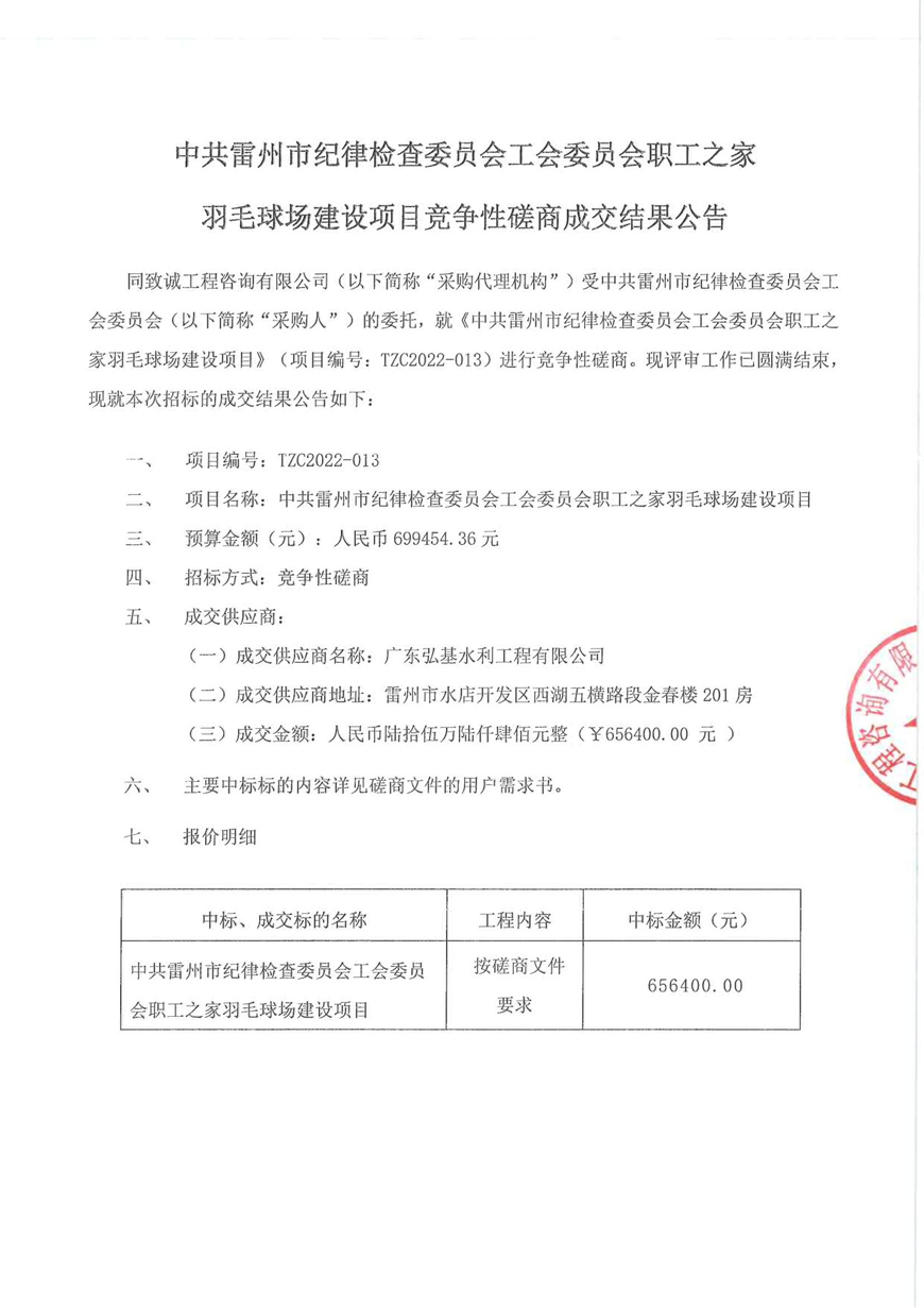 中共雷州市紀律檢查委員會工會委員會職工之家羽毛球場建設項目
