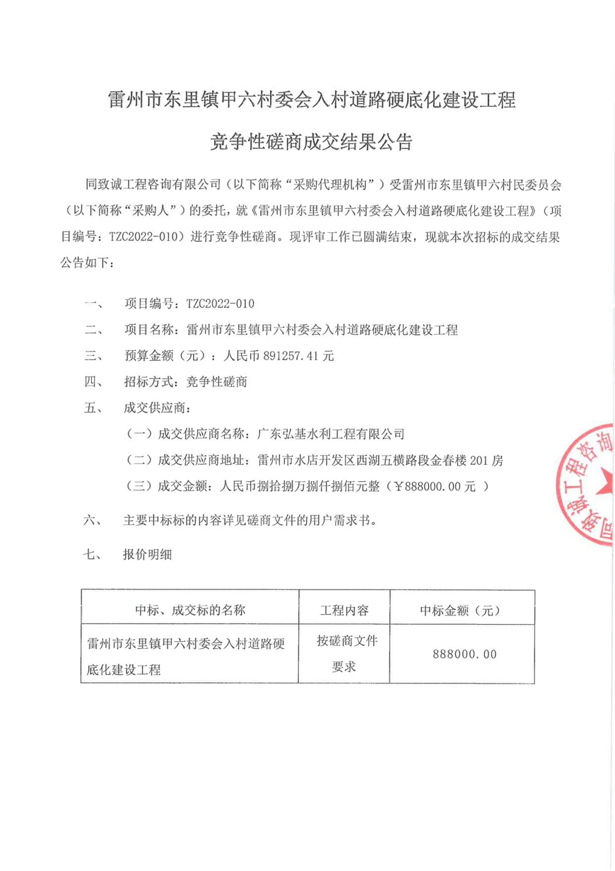 雷州市東里鎮(zhèn)甲六村委會入村道路硬底化建設工程