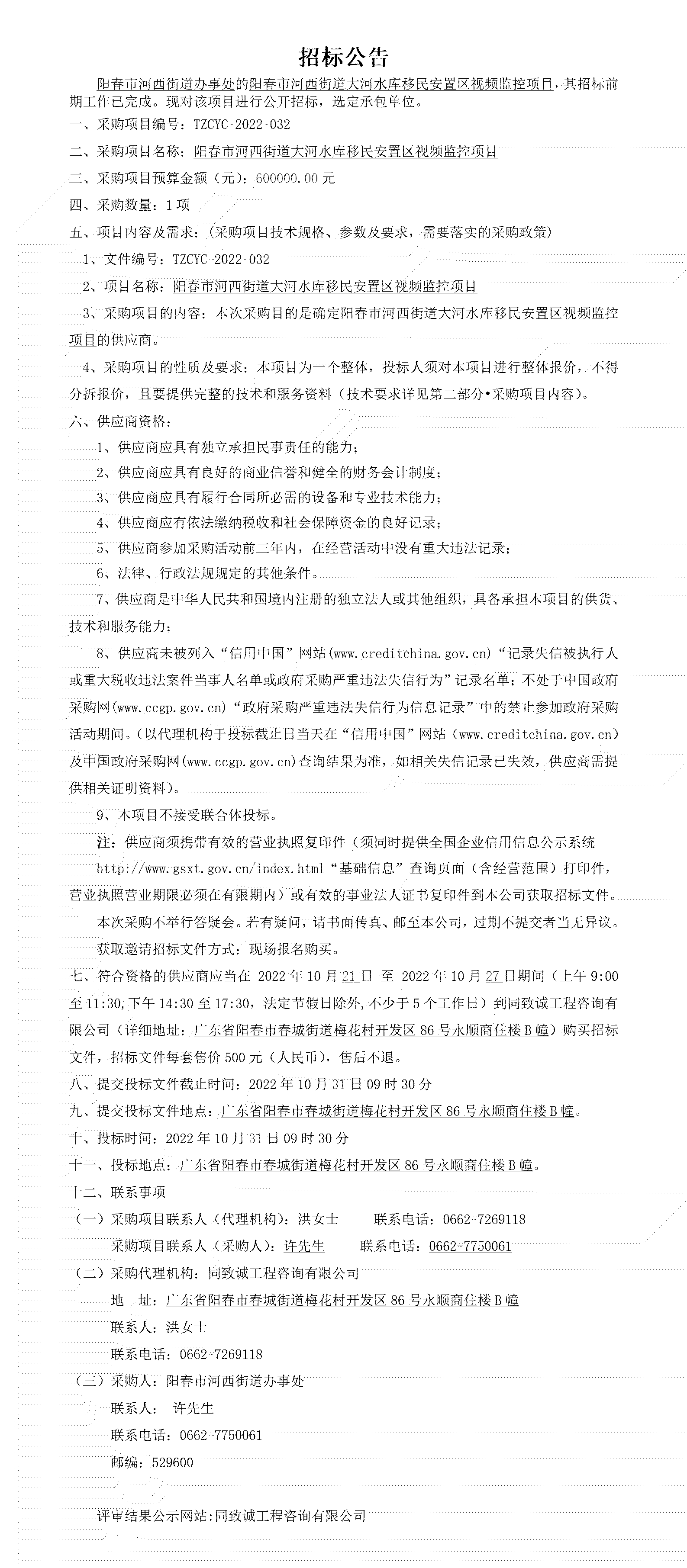 陽春市河西街道大河水庫移民安置區(qū)視頻監(jiān)控項目