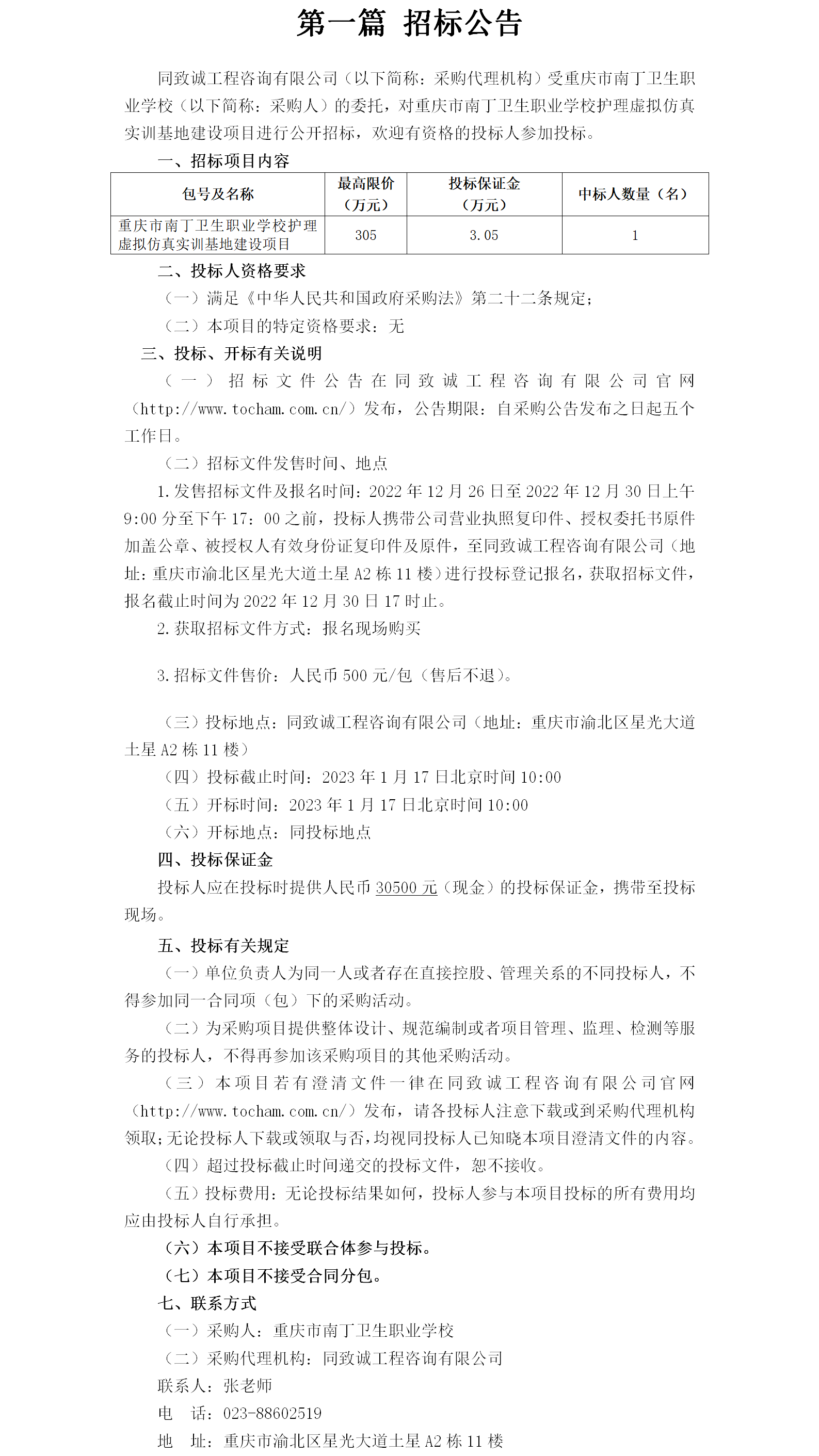 重慶市南丁衛(wèi)生職業(yè)學(xué)校護(hù)理虛擬仿真實訓(xùn)基地建設(shè)項目