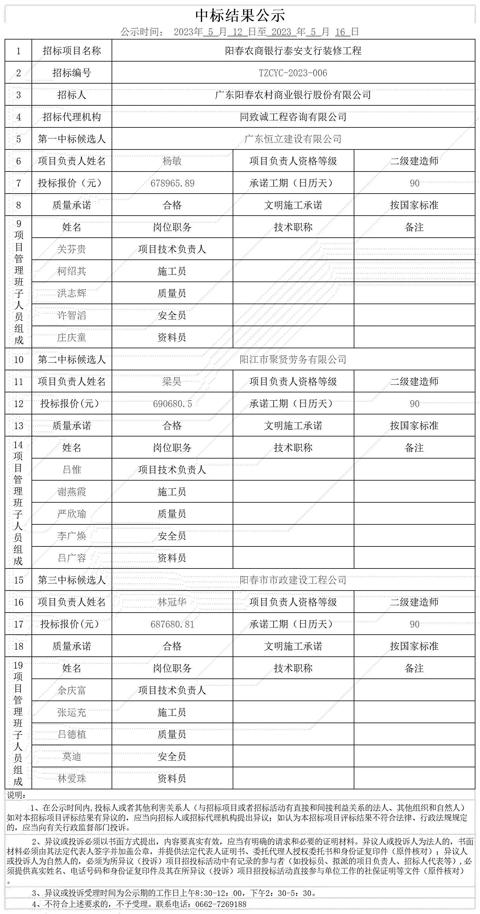 中標公示